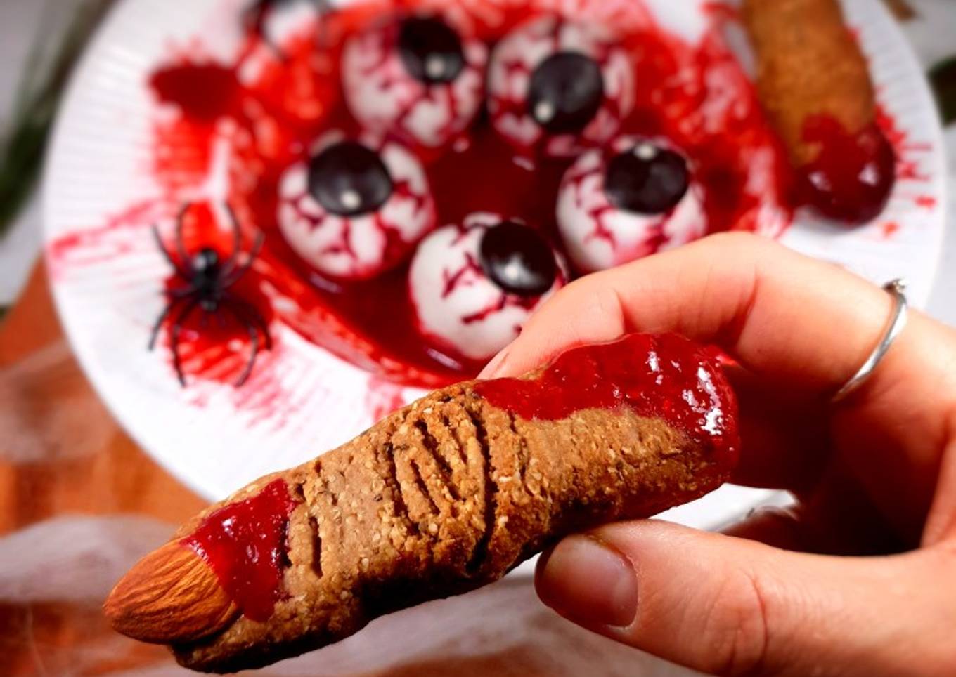 👉 Ces doigts de sorcières sont un régal, un biscuit saveur orange à tremper dans un sanglant coulis de framboise