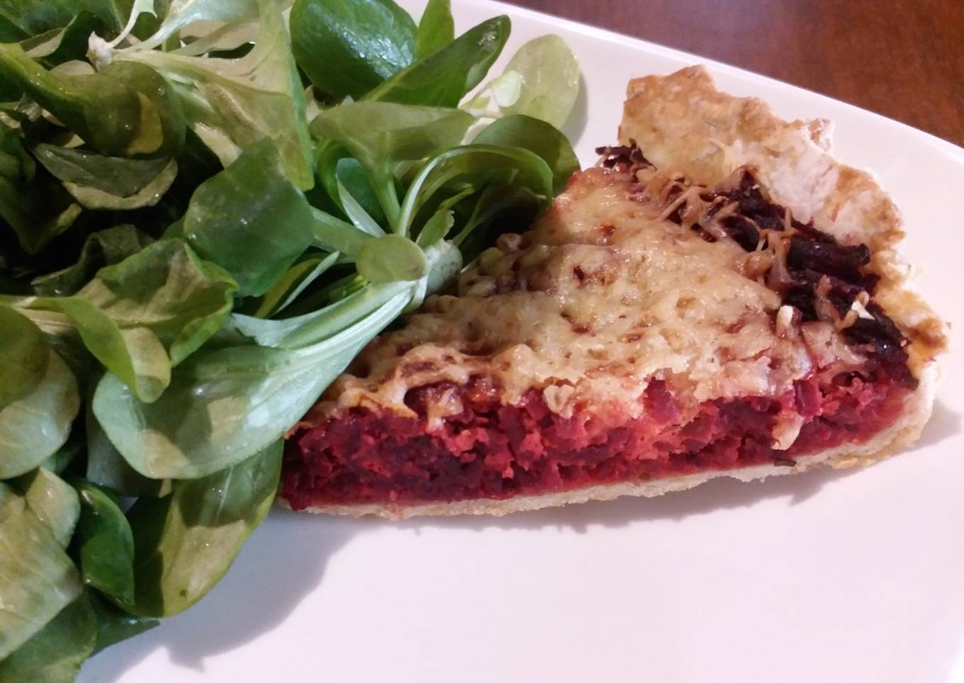 - Garnir la pâte du mélange betteraves, féta. Ajouter l'emmental parsemé.