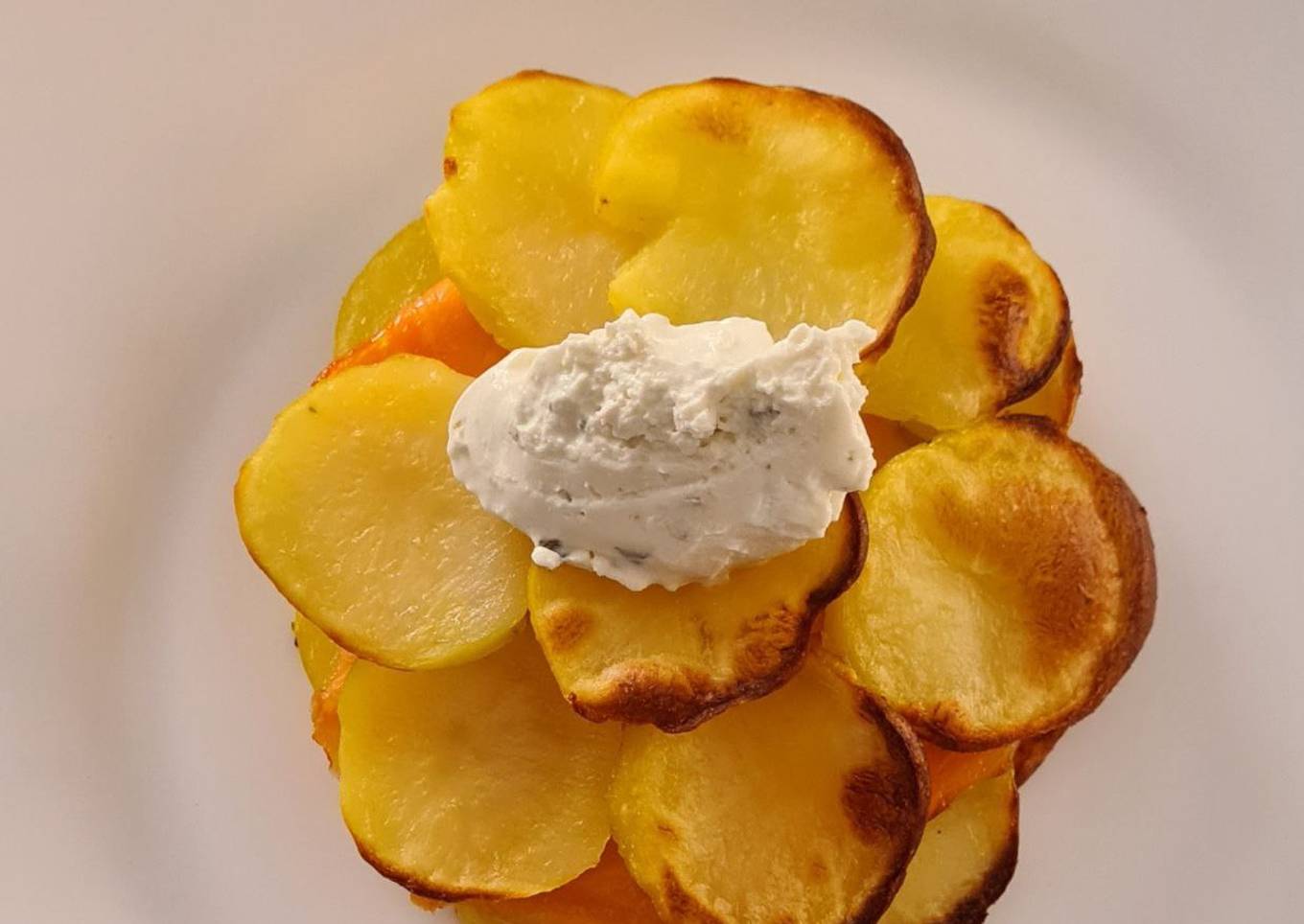 - Déposer une cuillerée de fromage sur les pommes de terre